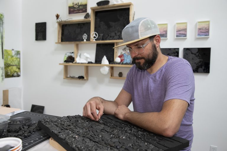 The independent review panel for the arts award said Smolinski’s project stood out for its “strong conceptual relationship between humans’ effect on the environment and artwork.” The panel also noted that the work addressed issues of materiality associated with environmental issues, eloquently evoking the transformation of materials such as coal through time.