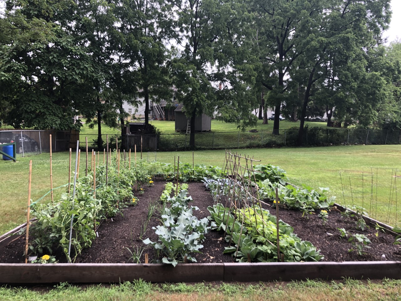 Several of our 2021 Master Gardener interns from Litchfield County worked on community gardens that helped provide not only food, but much needed outdoor learning environments. Rebekah Chestna spearheaded the creation of an outdoor classroom garden in Watertown, CT that donated over 200 pounds of food to the Watertown Food Bank. Carolyn Morin worked with 2014 Master Gardener, Mary Guilfoile, and Litchfield County Master Gardener program coordinator, Michelle Winkler, to help improve upon a food pantry garden started in 2020. Carolyn helped build support structures for peas, beans, and tomatoes providing for better air circulation around the plants and easier harvesting. Produce was donated to Friendly Hands Food Bank in Torrington. Rebecca Kowalski designed a pollinator garden to be used as an outdoor classroom at Goshen Center School.