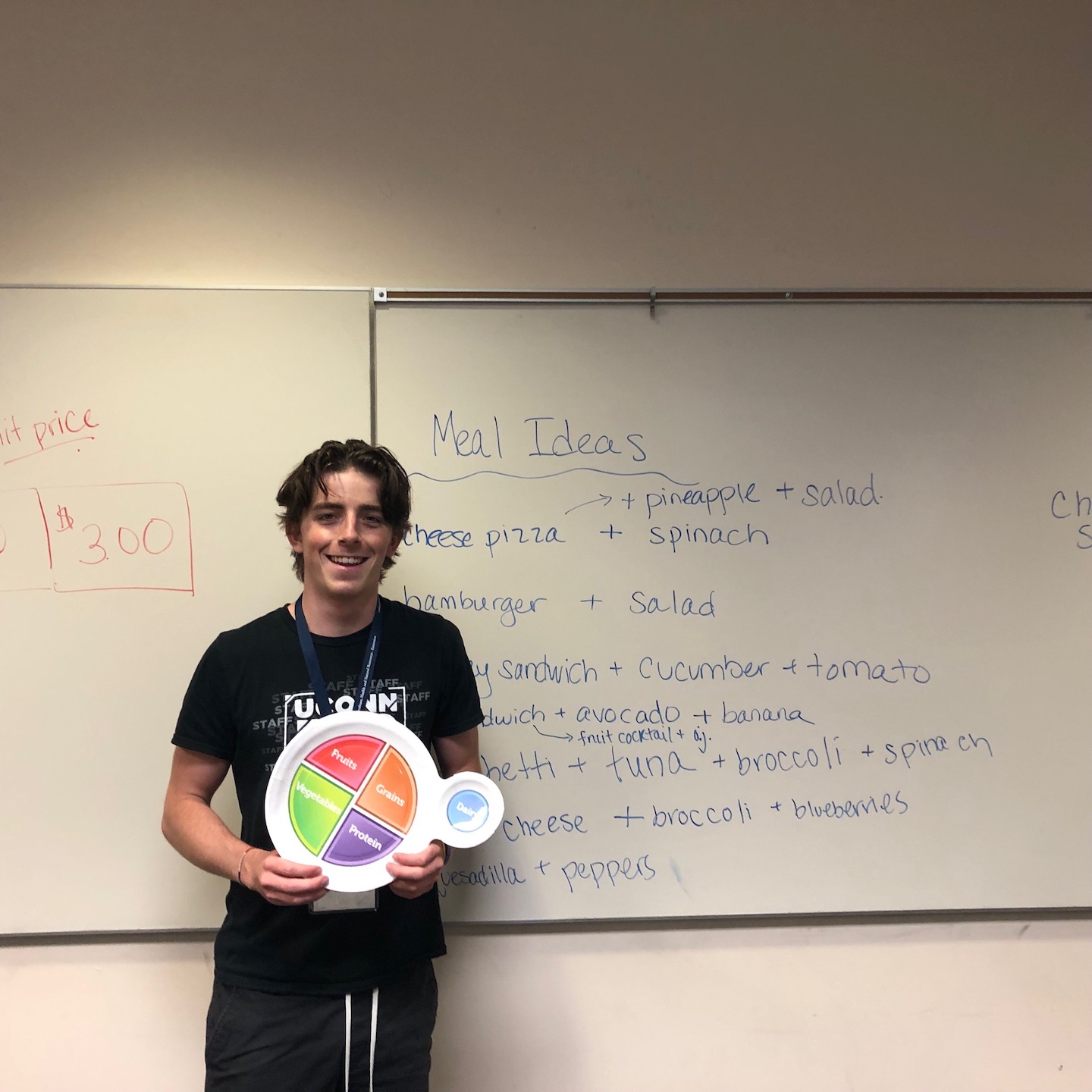 In July, Heather Peracchio, RDN and summer Extension intern Riley Courtney visited UConn’s Stamford campus for the purpose of providing nutrition and healthy eating education to teen members of the ConnCAP program. To start off, the two instructed the group on some principals of nutrition using the USDA’s MyPlate as a centerpiece. From there, they covered budget friendly tips on choosing the least expensive, healthiest options when perusing the aisle to spicing up typical college dorm go to’s with extra nutrition. Teens used photos of common foods to come up with healthy meal combinations that included more fruits and vegetables. As a culmination of this effort, a brief cooking demonstration and tasting was offered featuring a quick and easy yogurt parfait recipe including whole grain oat cereal, fresh and frozen fruits, and fat-free vanilla yogurt. All in all, the SNAP-Ed team had the class covered.