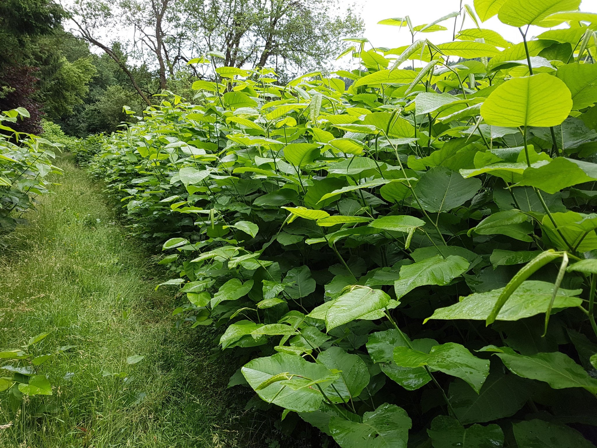 Japanese knotweed, Polygonum cuspidatum, is an aggressive invasive plant that grows vigorously along roadsides, wetland habitat, and utility rights of way. It may take years to control as new growth from rhizomes occurs even if the original plants are killed. Cutting back repeatedly is helpful, but works better when an herbicide is applied to open wounds on the plant after cutting. If you are struggling to manage Japanese Knotweed in your area, take a look at the recommendations at the link below and keep up with treatments to stop the spread!