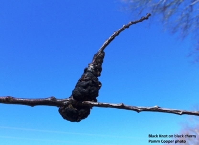 Black Knot, is a disease commonly found on plums and Prunus species. The fungus causes the plant to produce unusual galls which eventually grow to girdle twigs and branches, restricting water supply and killing portions of the canopy. It is spread to other plants via wind and water.