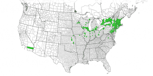 In the U.S., both species are mostly found in the northeast region: Connecticut, Massachusetts, Rhode Island, and New York. Scattered infestations in Michigan and Illinois.