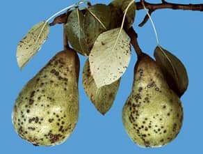 Fabraea Leaf Spot (Diplocarpon mespili) is a fungal disease affecting both pears and quince. Infections lead to leaf spotting, defoliation, and overall unmarketable fruit. This disease is fairly similar to that of apple scab. Fabraea overwinters on orchard debris, and the spores are released from mid-May to July, during rain events.