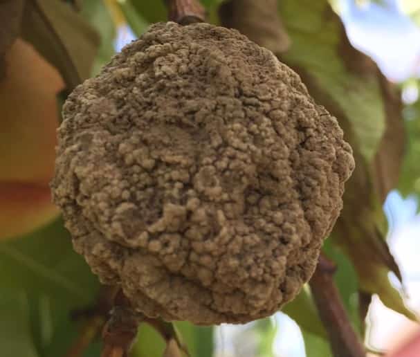 Brown Rot (Monolinia fruticola) is a fungal pathogen affecting all stone fruit, including peach, nectarine, plum and cherry. The pathogen overwinters on mummies in trees, fallen fruit, and in cankers found on twigs and branches. Fungal infection relies on warm temperatures along with a wetting period, and may present as blossom blight, shoot blight, and/or fruit rot.